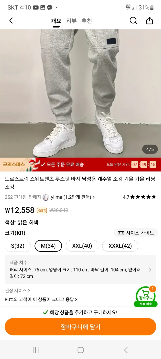 ✅ 3. 구매 과정은 한국이랑 거의 똑같습니다. 원하는 상품의 옵션을 선택하셔서 장바구니에 담아 둡니다.